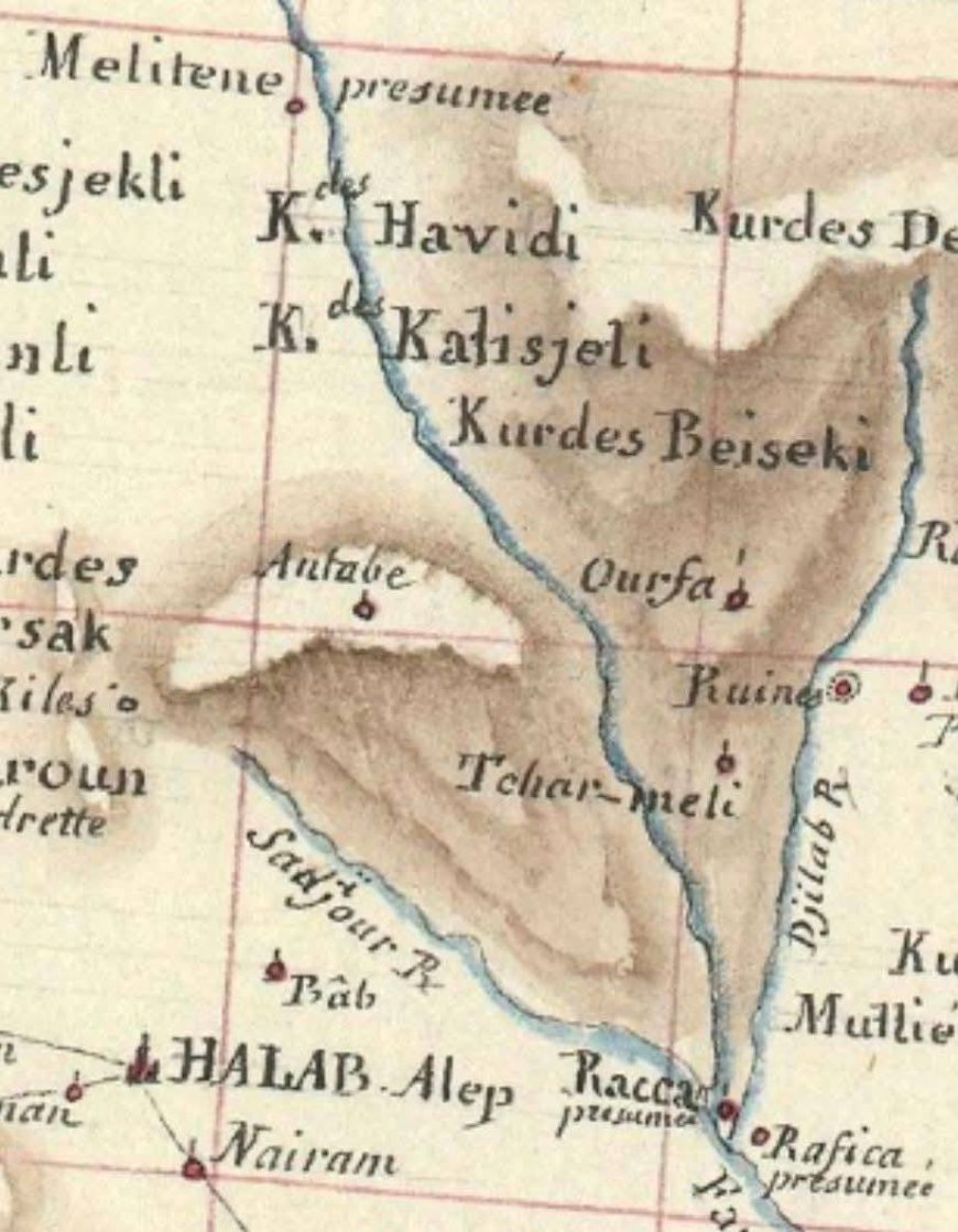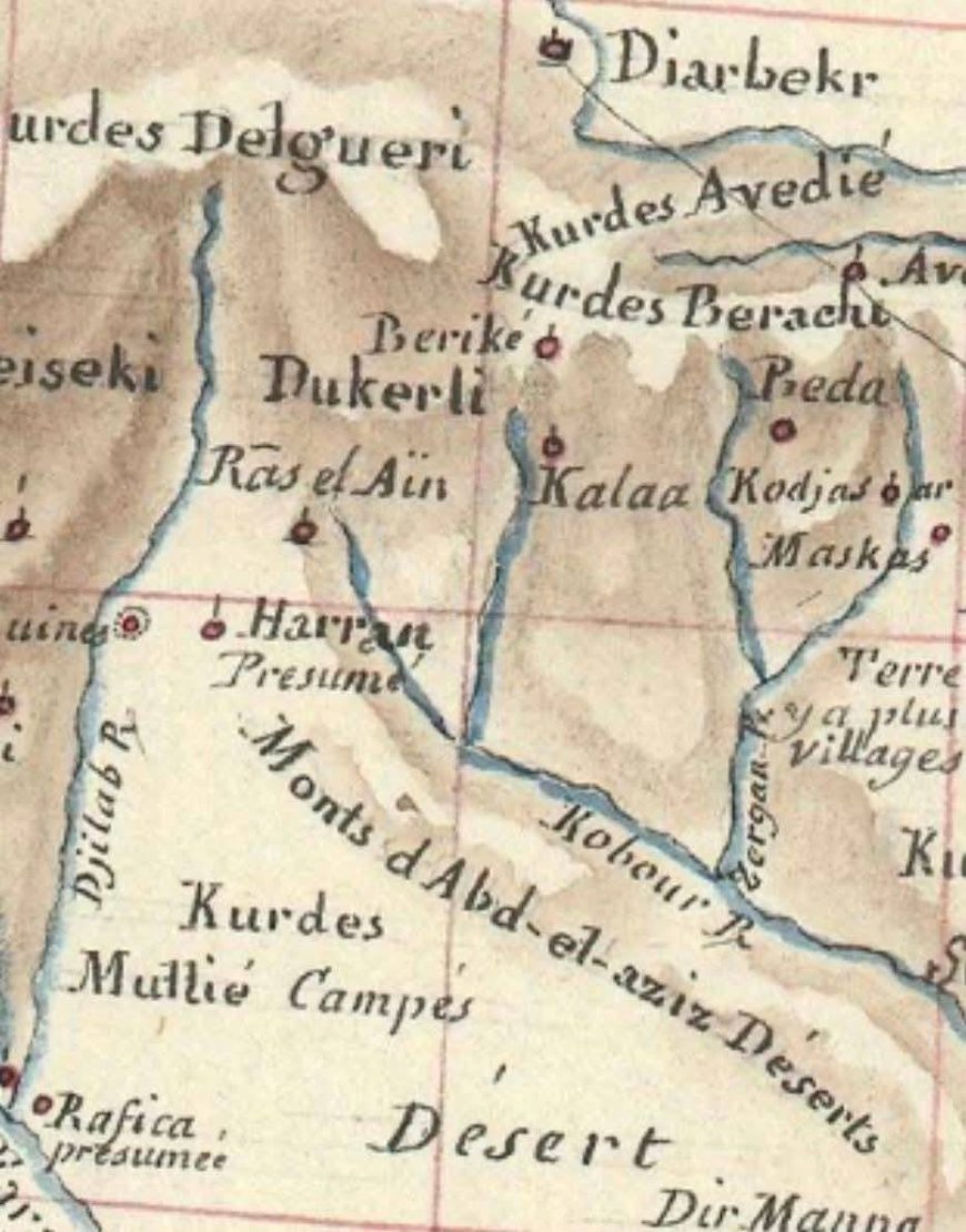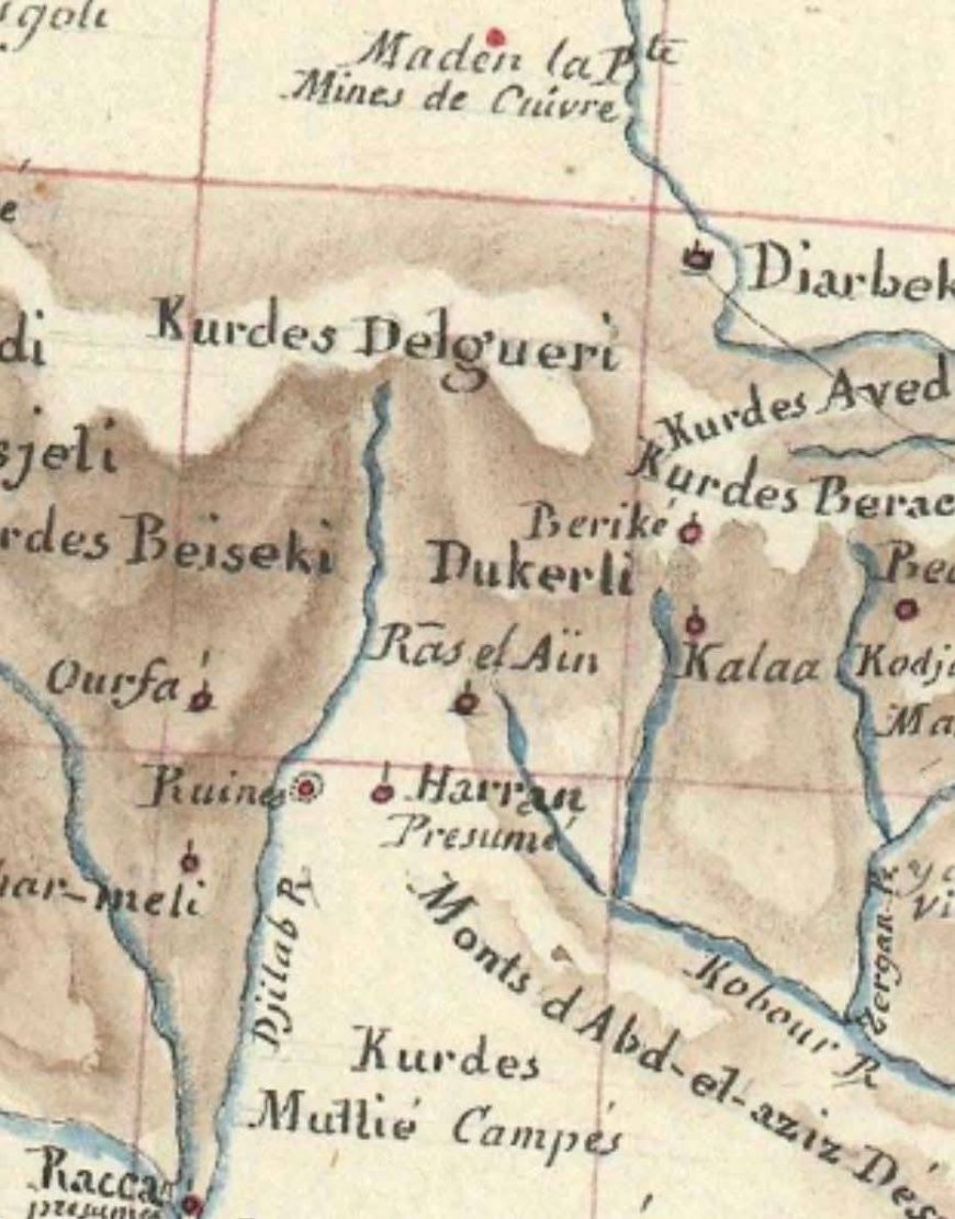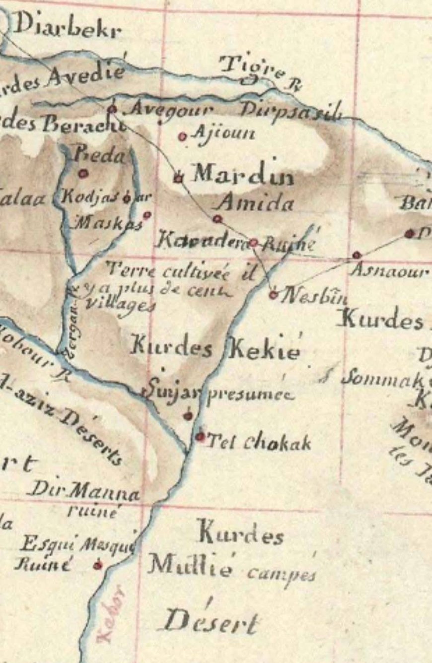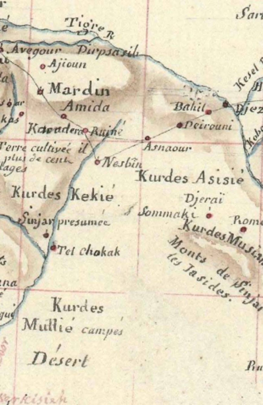 Li gor agahiyên nû yên dîrokî ku ji aliyê rûpelek Kurdî ya bi navê "Kurdi Mardini" ve hatine parvekirin, xerîteyeke kevin ku ji aliyê gerokê Fransî Joseph de Beauchamp ve hatiye xêzkirin, belavbûna eşîrên Kurd li herêma Cizîra Feratê di dawiya sedsala 18. de nîşan dide.