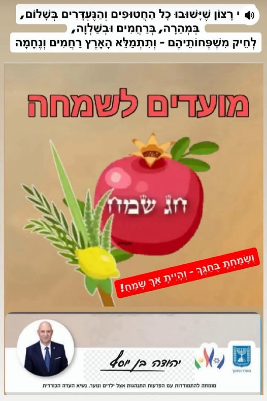 Yehuda Ben Yosef, Serokê Civata Kurdên li Îsraîlê, Peyama Cejna Sûkotê Belav Kir: "Yekîtî û Vegera Dîlgirtiyan"