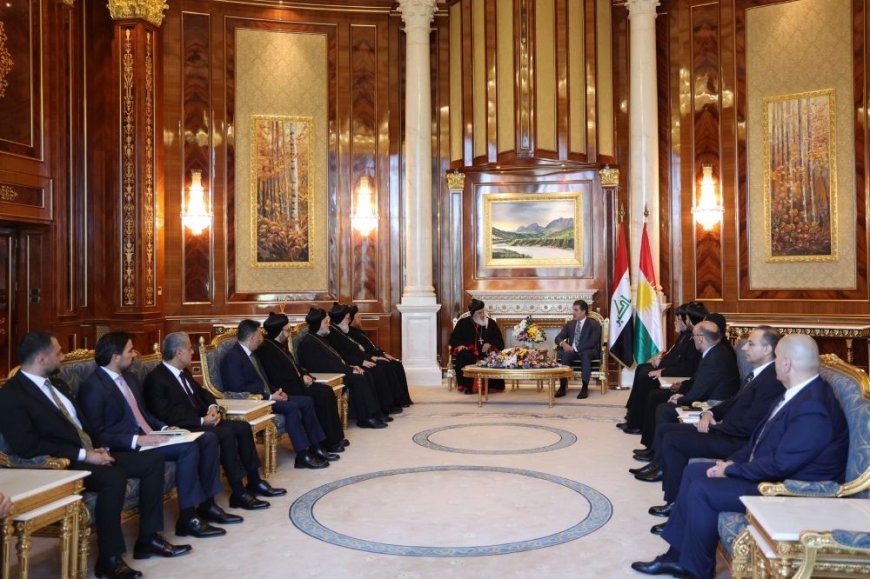 Îro Pêncşemê, 16/10/2025, piştî nîvro, rêzdar Nêçîrvan Barzanî, Serokê Herêma Kurdistanê, pêşwaziya Patrîkê Pîroz Mar Axnatyûs Eframê Duyem, Patrîkê Dêra Suryanî ya Ortodoks û şandeke pê re kir, ku ji hejmarek metran, qeşe û kesayetiyên olî yên dêrê ji seranserê cîhanê pêk dihat.